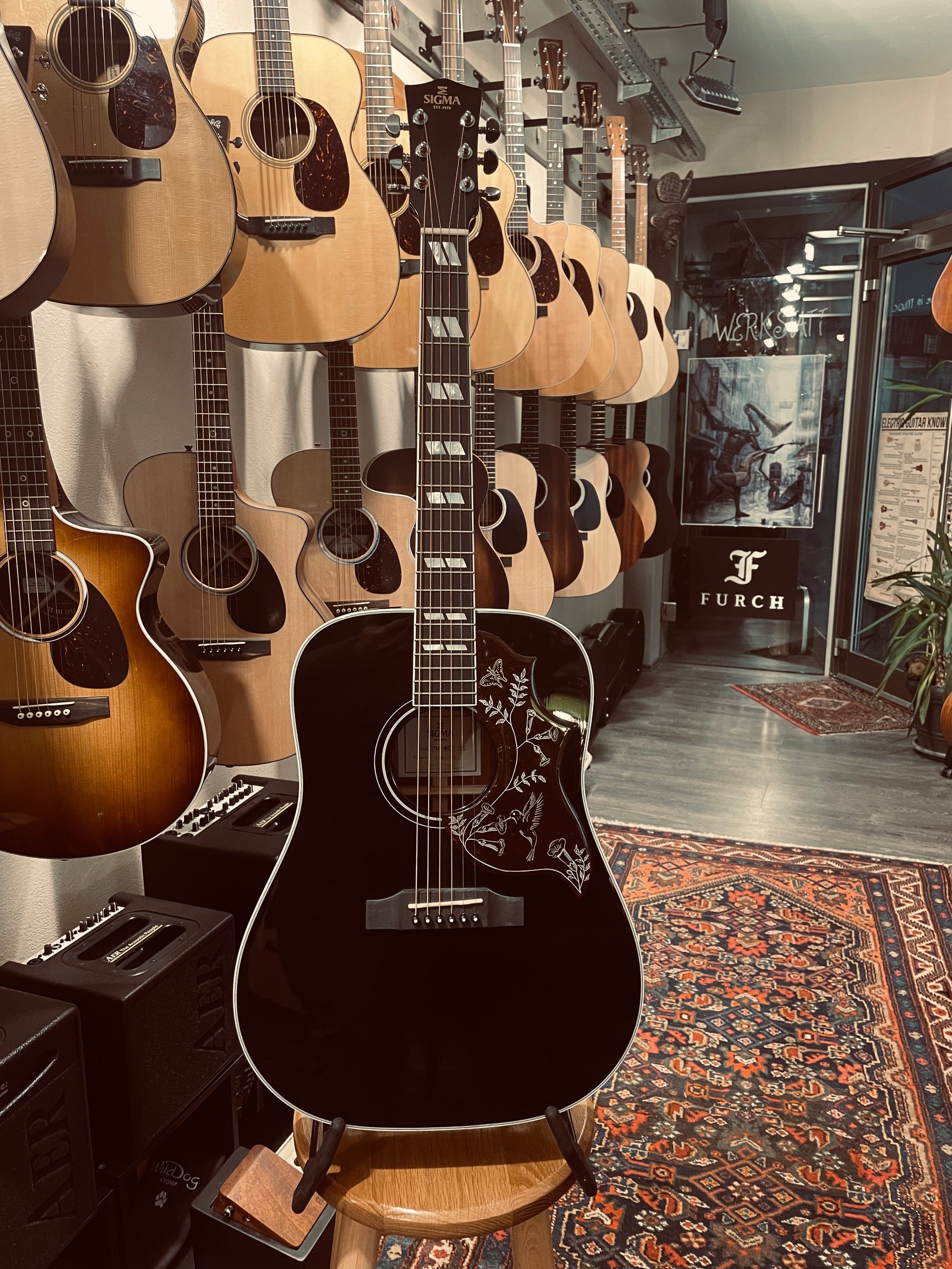 Decke: Sitka Fichte massiv, Zarge & Boden: Mahagoni MASSIV